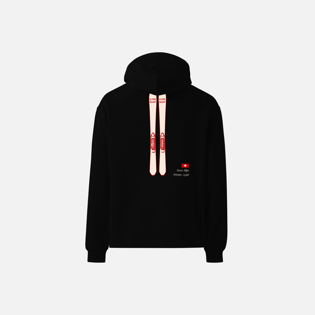 The Gone Skiing hoodie is a adventurous piece. Gliding through the soft, white snow, you're met with nature guiding you to your next adventure. A heavy cotton feel gives you the protection through all adventures. Pairing great with a pair of khaki cargo pants or red nylon skiing pants.